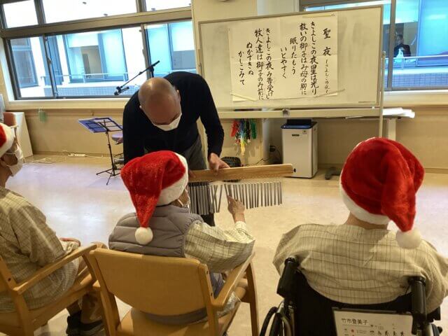 12月12日(金曜日)、和光会職員の吉安さん、岡本さんをお招きし、院内にてクリスマス音楽会を開催いたしました。
