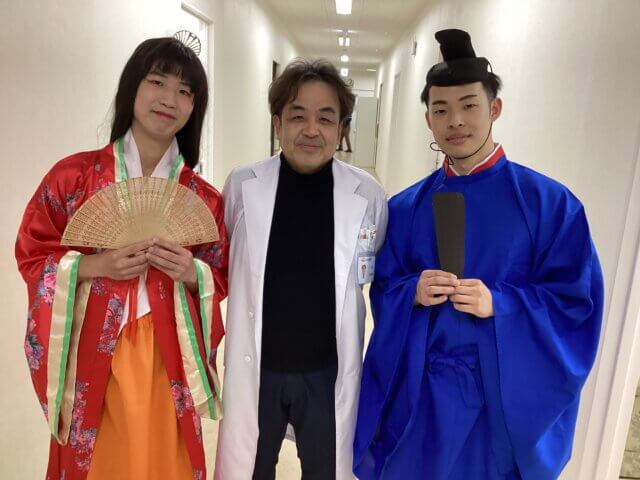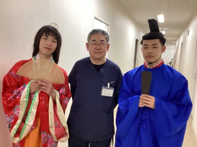 当日は、スタッフがお雛様やお内裏様などの衣装に身を包み、各病棟や部署をめぐりました。春の訪れを感じる行事として、患者さんやスタッフの間に自然と笑顔が広がる時間となりました。